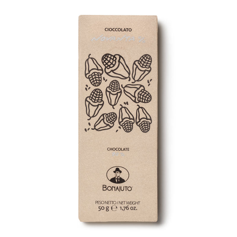 The notes of cocoa predominate in this chocolate which retains a barely perceptible sweetness, ideal for those who prefer an intense and deep flavour.