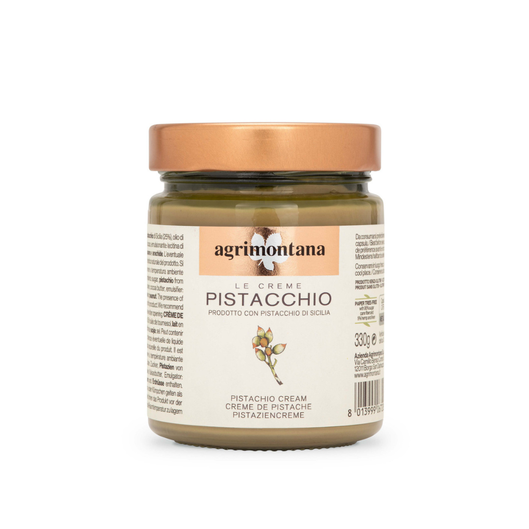 Feudo San Biagio Pistachio Cream takes its name from the ancient fiefdoms of the Platani River valley. The blend of Gran Cru pistachios, known for their distinctive, intense flavor, gives the cream a unique and delicate taste. Its velvety texture and intense pistachio flavor make it an irresistible addition to sweets and desserts. Contains no palm oil.