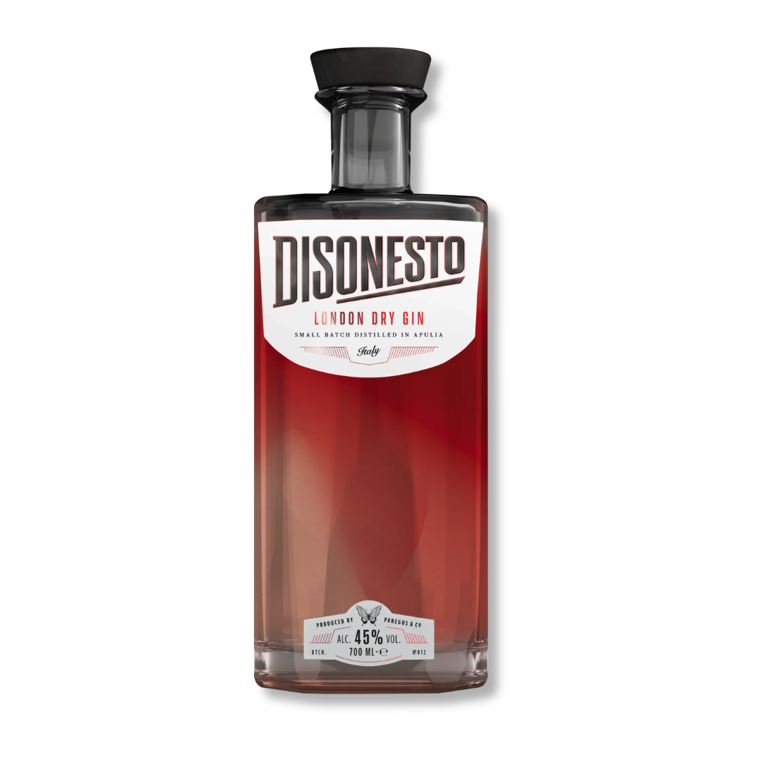 Il Disonesto London Dry Gin è un gin italiano dal carattere deciso e provocatorio, nato dall’idea di rompere gli schemi e raccontare il mondo della mixology con personalità e ironia. Prodotto con botaniche selezionate e distillato secondo lo stile London Dry, esprime un perfetto equilibrio tra tradizione e spirito contemporaneo.