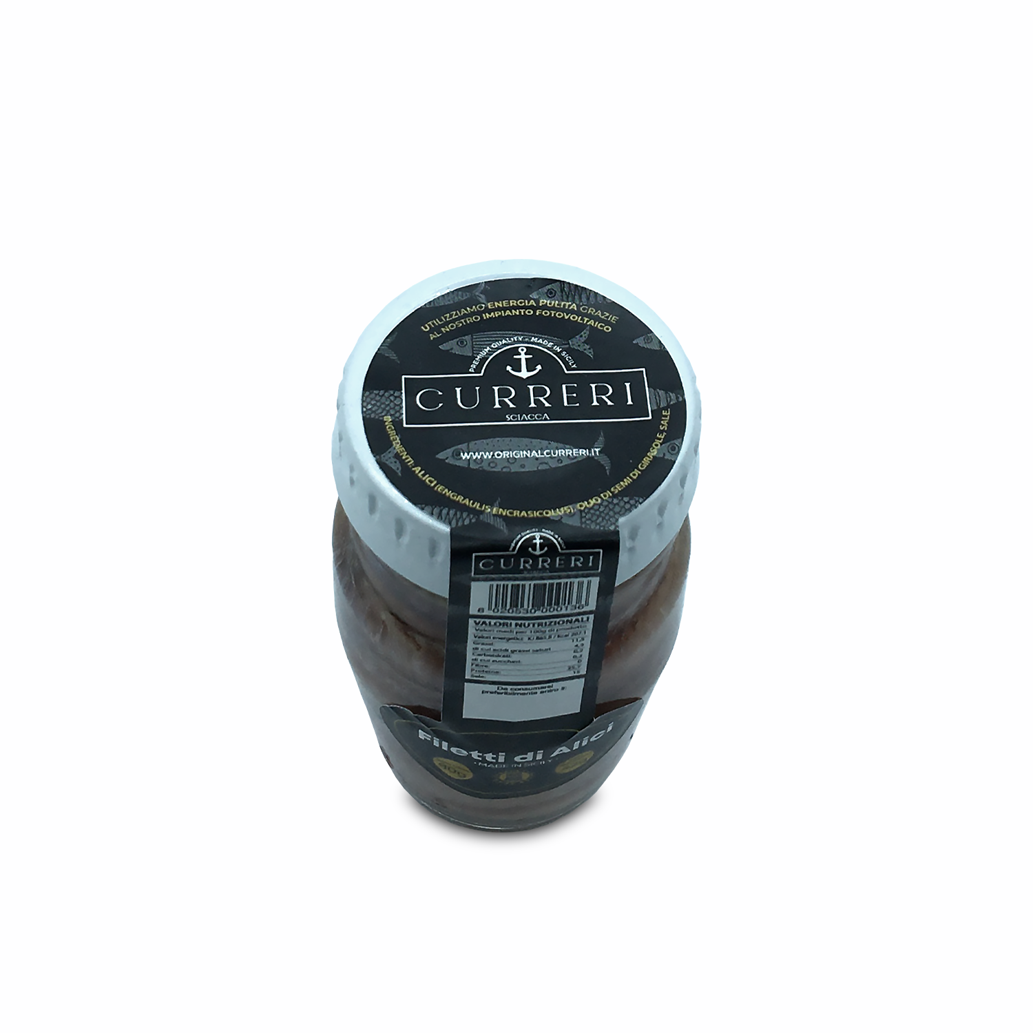 The anchovies, caught in the Mediterranean Sea, are processed within the day and salted with sea salt from the Trapani salt pans. Aging for at least 45 days enhances their organoleptic characteristics, ensuring an intense flavor and perfect texture.
