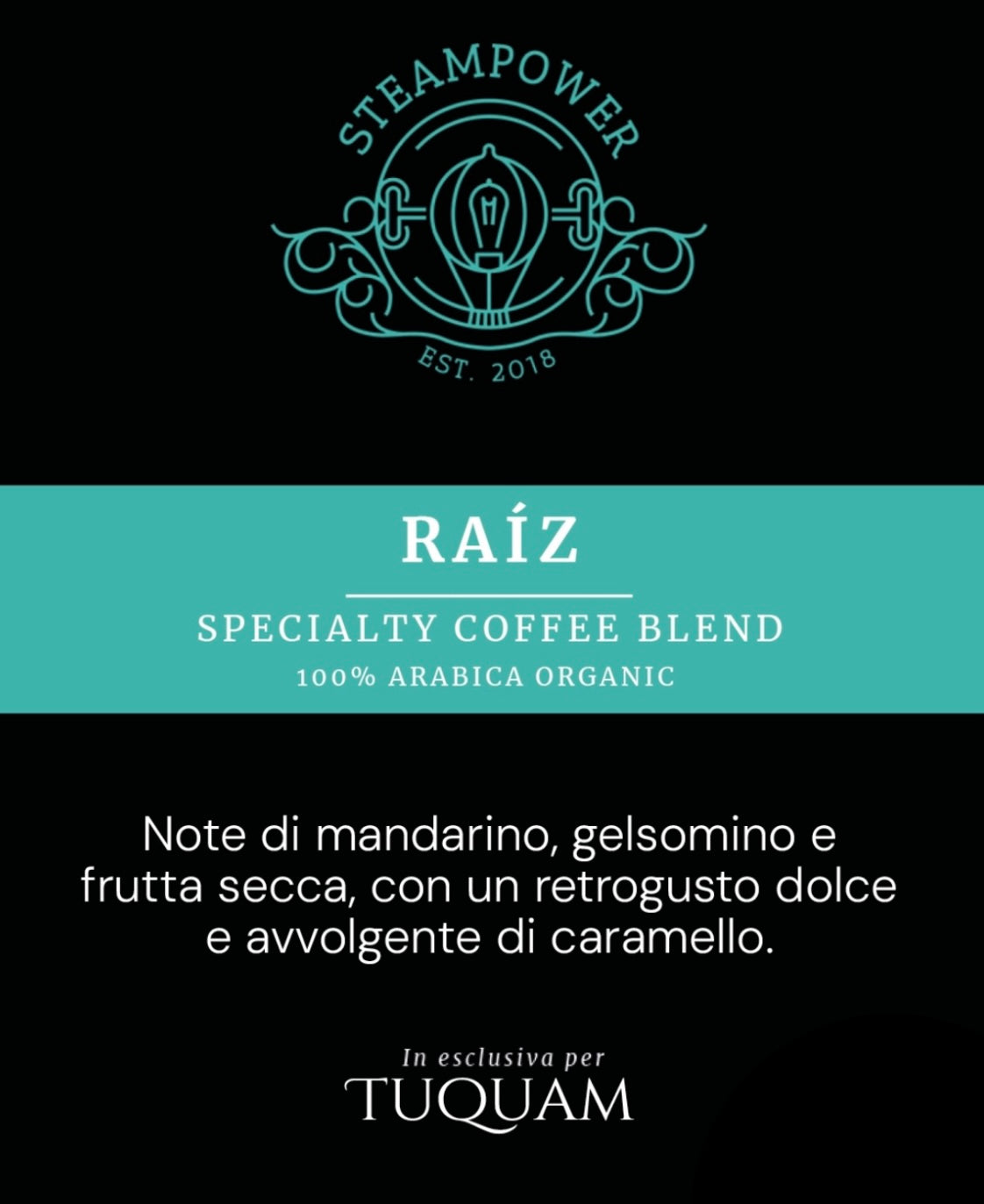 Creato da Steampower in esclusiva per Tuquam, Raìz è l’espressione autentica di una tostatura attenta e di una filiera rispettosa, pensata per chi cerca un caffè che racconti una storia ad ogni sorso.